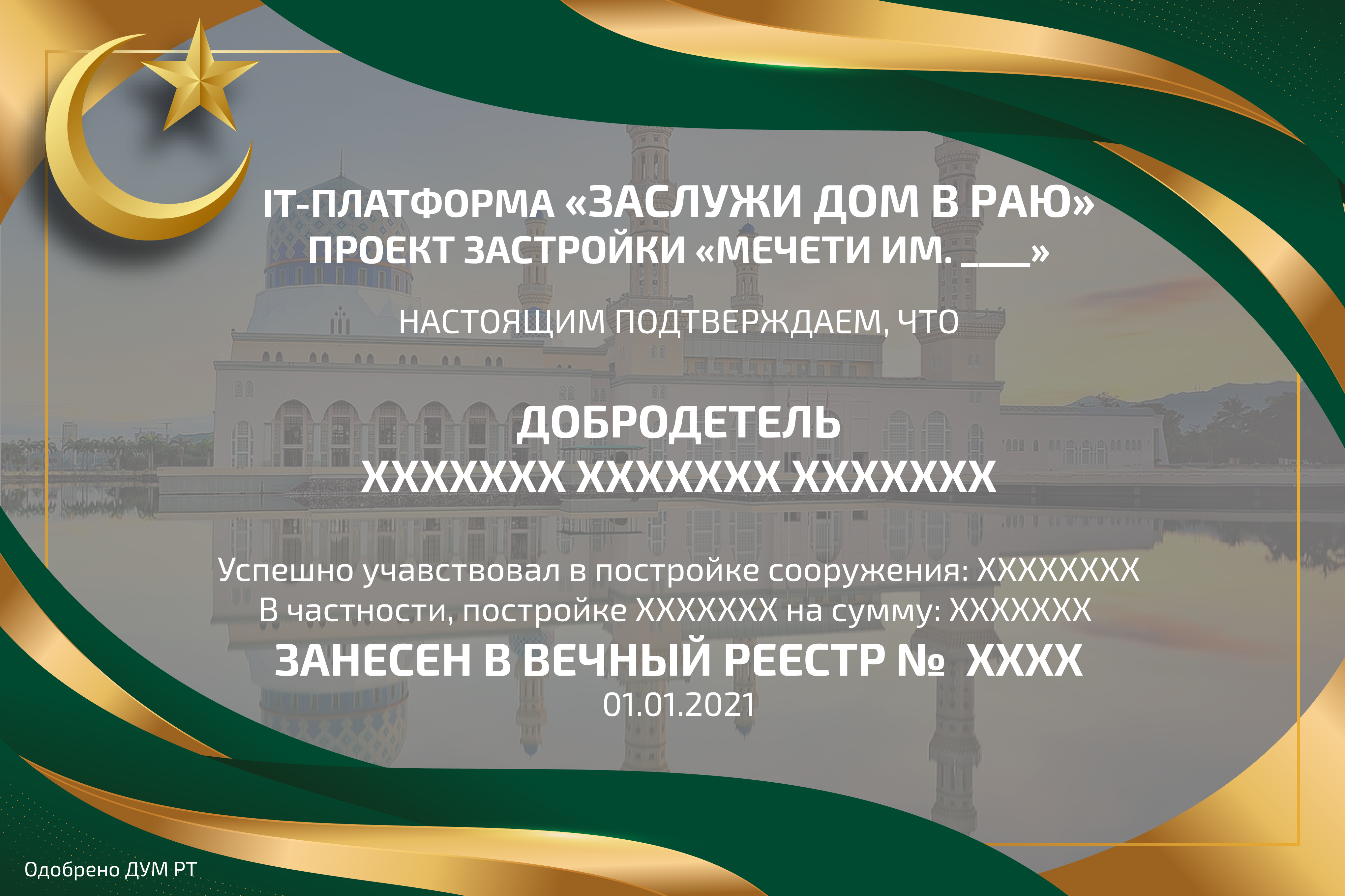 За каждым добродетелем закрепляются конкретные элементы строения, соразмерно его вкладу, после чего он попадает в реестр и получает письменный и цифровой сертификат.